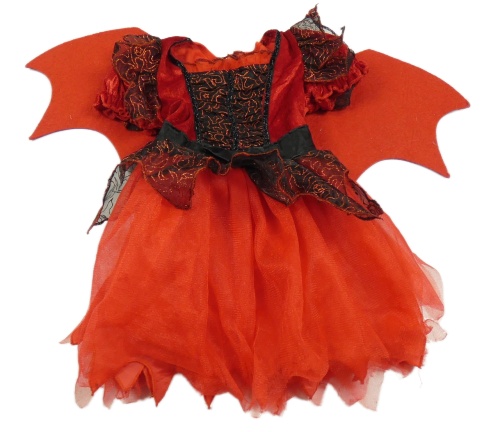 Kostým - Červeno-černé sametovo/tylové šaty s křídly St. Bernard