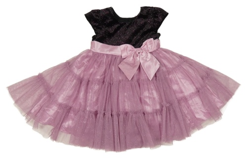 Růžovo-černé tylovo/saténovo/sametové slavnostní šaty s mašlí a třpytkami