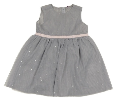 Šedé tylové slavnostní šaty s růžovou stuhou