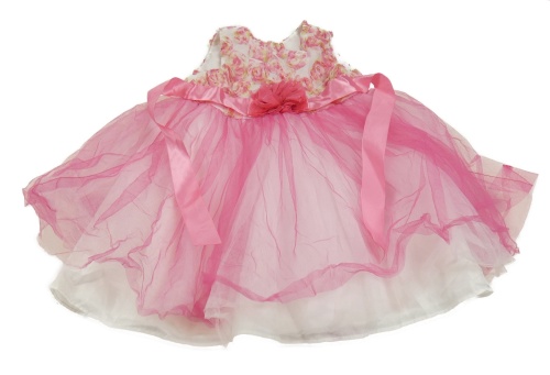 Růžovo-bílé tylové květované slavnostní šaty s páskem