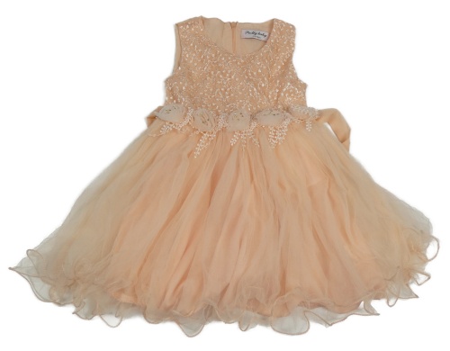Světlerůžové slavnostní tylové šaty s 3D květy a výšivkami