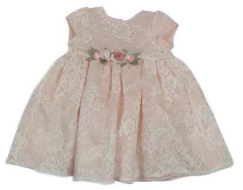 Světlerůžové krajkové slavnostní šaty s 3D květinami
