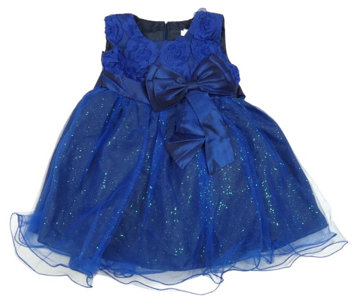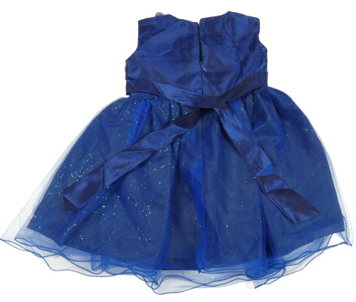Safírové slavnostní šaty s mašlí a květy a třpytivým tylem