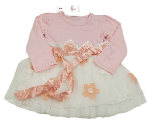 Nové - Světlerůžovo-bílé slavnostní šaty s mašlí a kytičkami