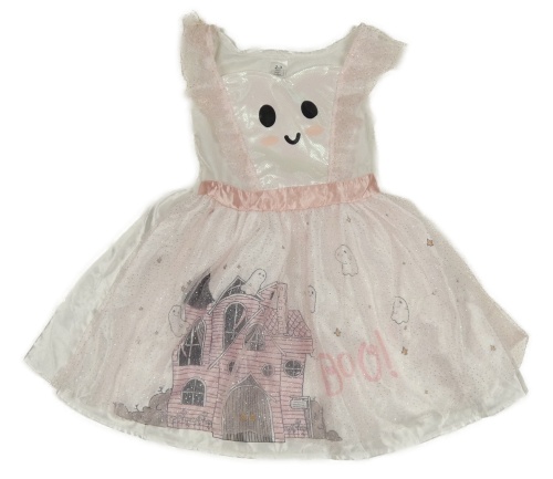 Kostým - Bílé sametovo-tylové třpytivé slavnostní šaty s obličejem - duch