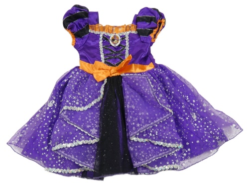 Kostým - Fialovo-černo-oranžové saténové šaty s Minnie Disney