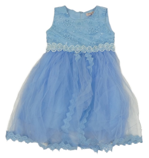Světlemodré slavnostní šaty s výšivkami květin a krajkou