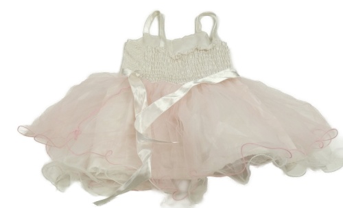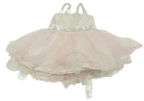Bílo-světlerůžové slavnostní šaty s výšivkami květů a tylovou sukní