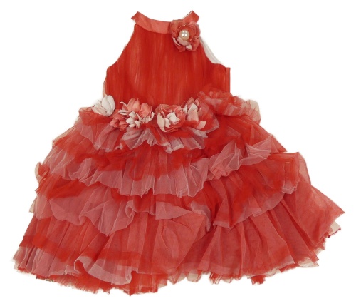 Červeno-bílé tylové slavnostní šaty s květy a korálky