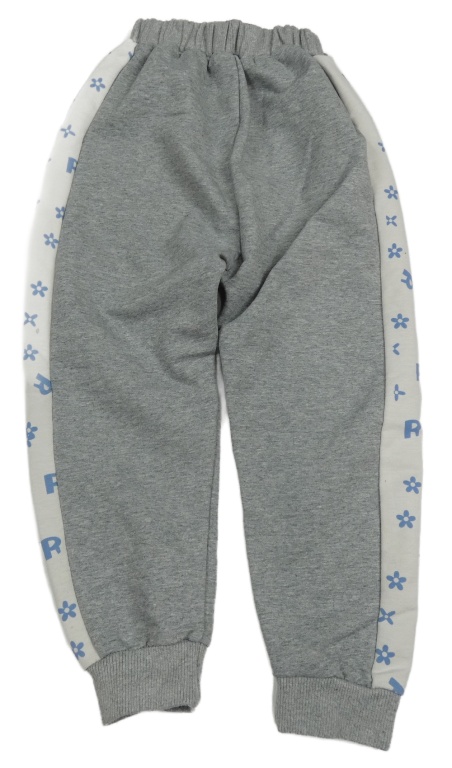 Šedo-světlebéžové melírované tepláky s květy a písmenky