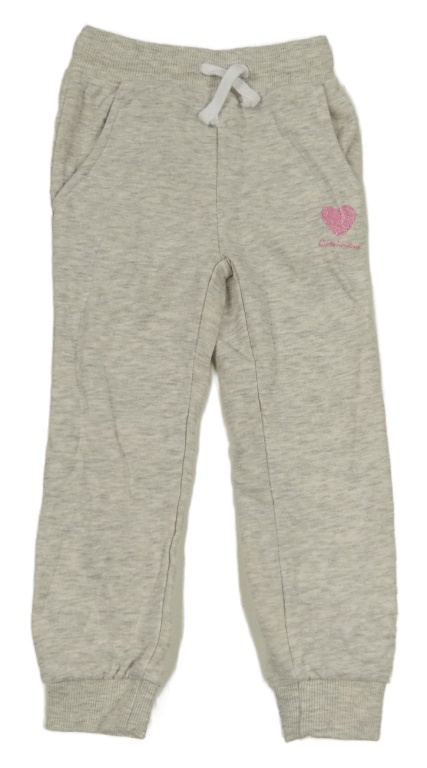 Světlešedé melírované silnější tepláky se srdíčkem a nápisem dopodopo