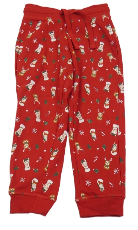 Červené tepláky s lamami a soby s vánočním motivem lupilu