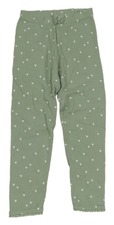 Olivové žebrované legíny se srdíčky a mašlí a krajkou H&M