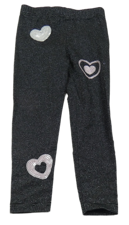 Černo-stříbrné pruhované legíny se srdíčky z flitrů Kiki&Koko