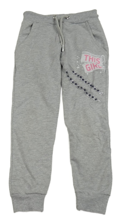 Šedé melírované tepláky s nápisem a puntíky
