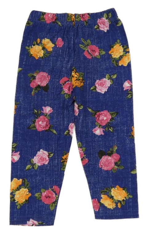 Tmavomodré capri legíny riflového vzhledu s růžemi