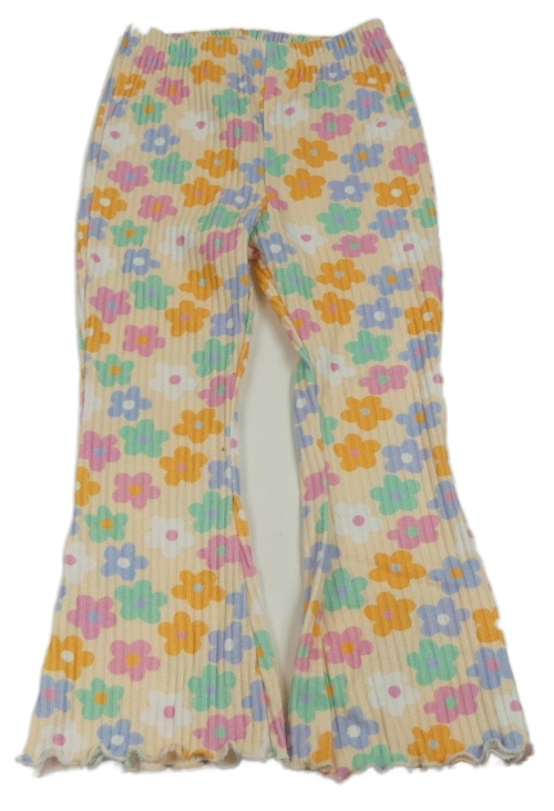 Smetanové žebrované úpletové flare legíny s kytičkami Shein