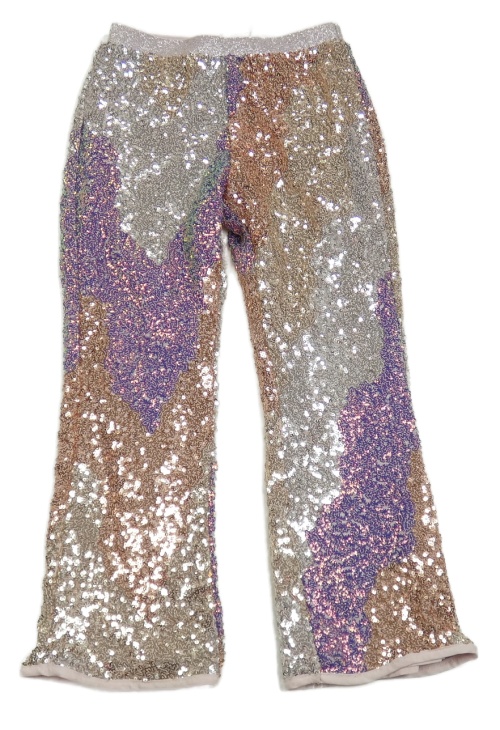 Stříbrno-fialové flitrové flare kalhoty H&M