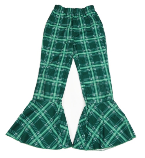 Zeleno-bílé kostkované flare kalhoty Shein
