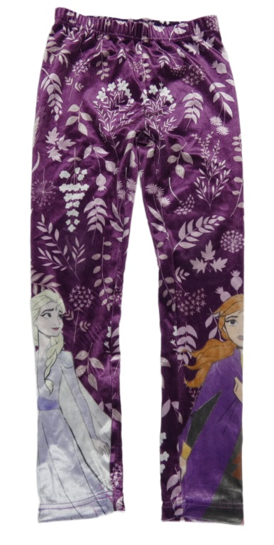 Purpurové sametové legíny s Frozen a kytičkami a lístečky Disney