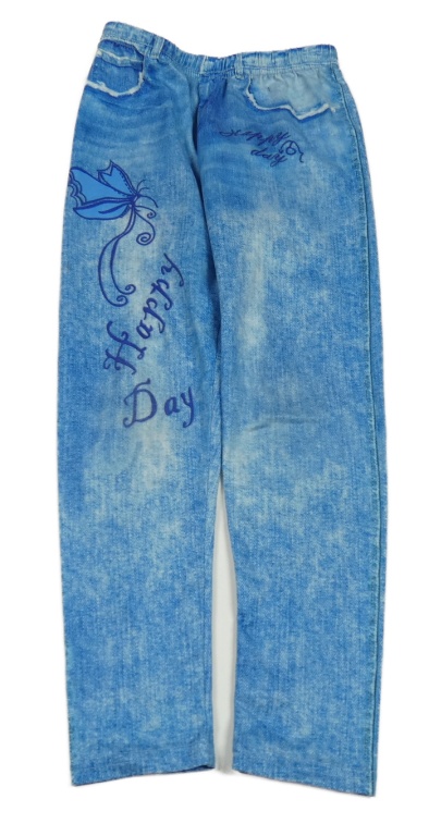 Světlemodré legíny riflového vzhledu s nápisy