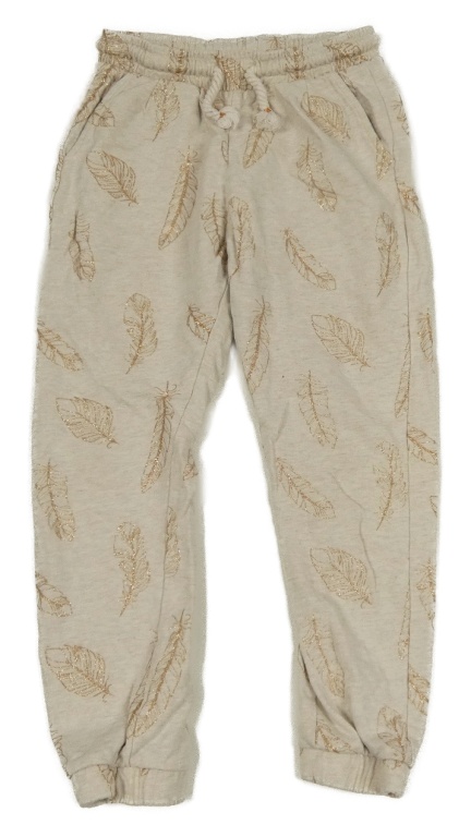 Světlebéžové tepláky se zlatými pírky