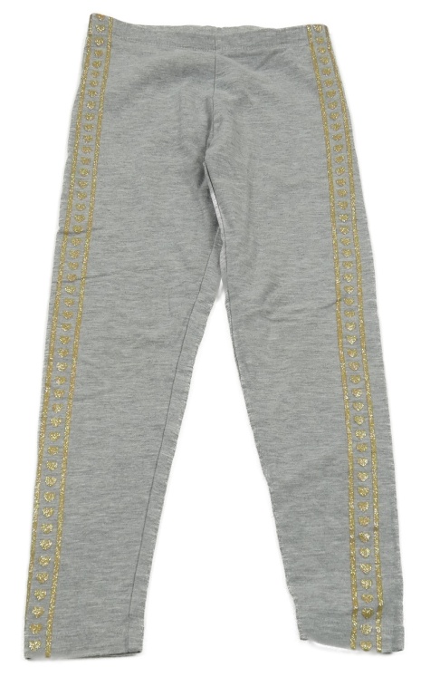 Šedé melírované legíny se zlatým pruhem se srdíčky