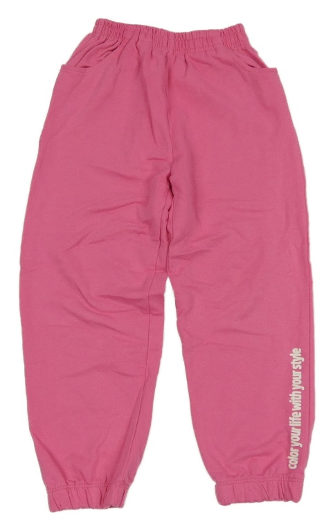 Růžové tepláky s nápisem