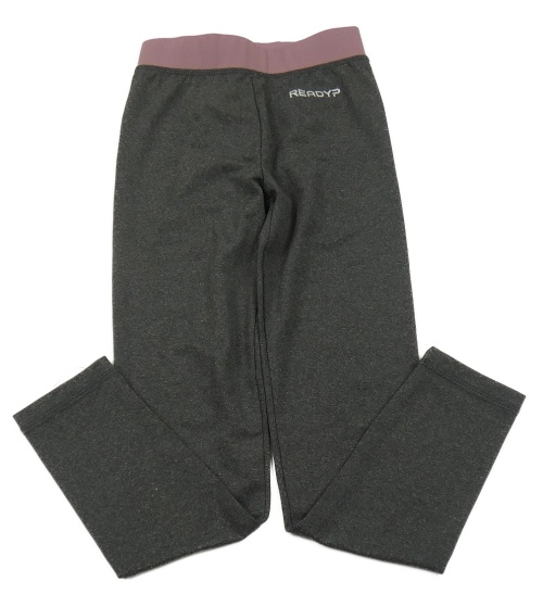 Tmavošedo-hnědofialové melírované sportovní legíny s nápisem