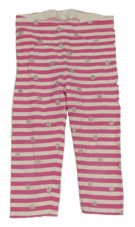 Tmavorůžovo-bílo-stříbrné pruhované puntíkaté capri legíny H&M