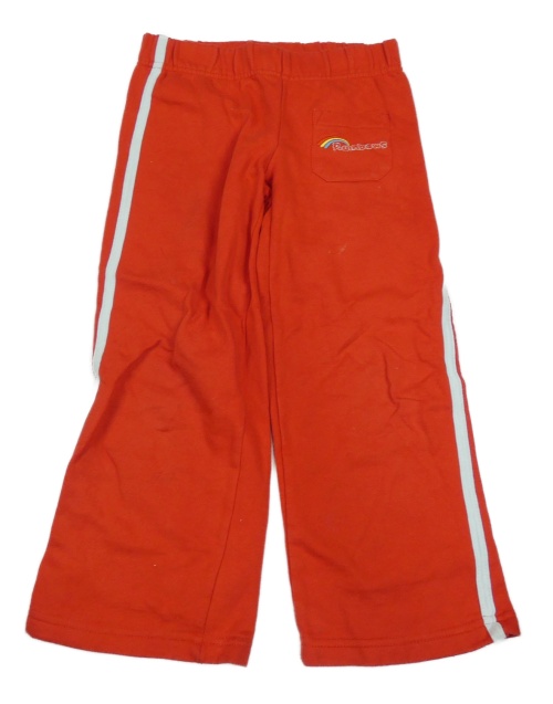 Červeno-bílé tepláky s nápisem a pruhy