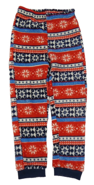 Červeno-modro-bílé vzorované chlupaté kalhoty