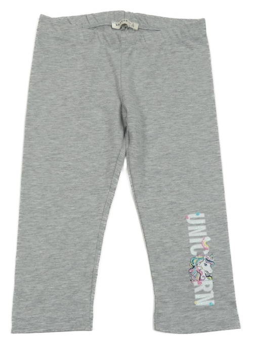 Šedé melírované capri legíny s jednorožcem