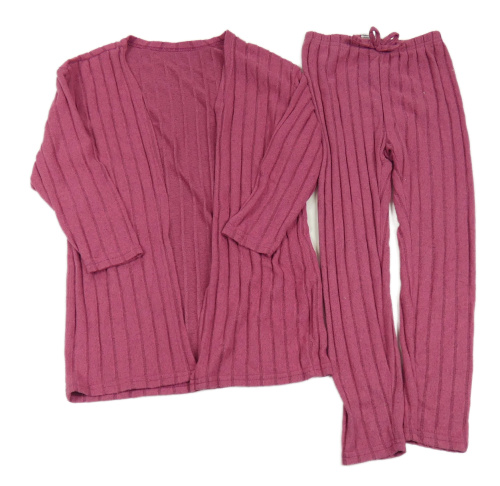 2 set - Růžový pletený žebrovaný cardigan + pletené legíny shein