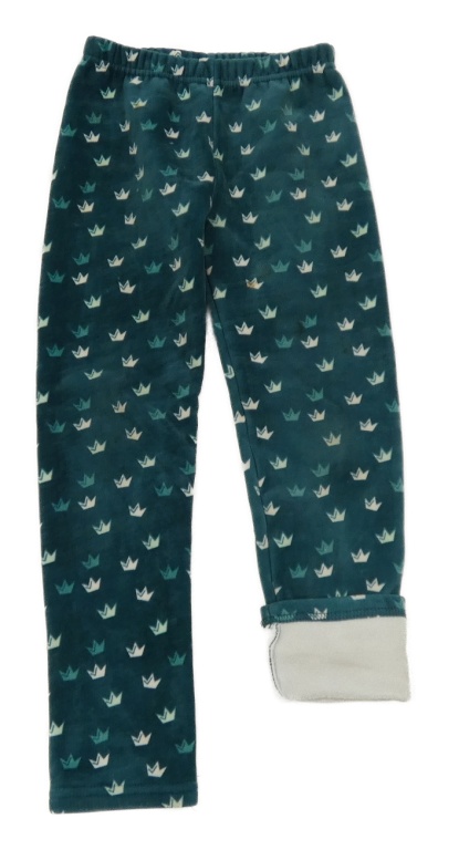Tmavozelené plyšové zateplené legíny s korunkami Topolino