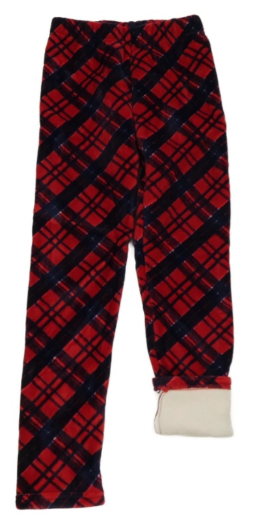 Červeno-tmavomodré kostkované plyšové zateplené legíny Topolino