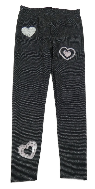 Černo-stříbrné pruhované legíny se srdíčky s flitrů Kiki&Koko