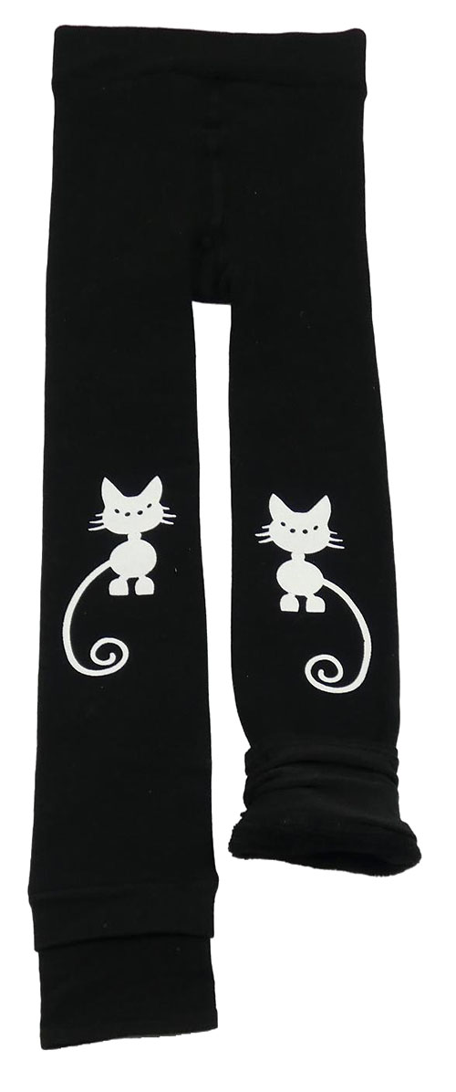 Černé thermo punčochové legíny s kočkami