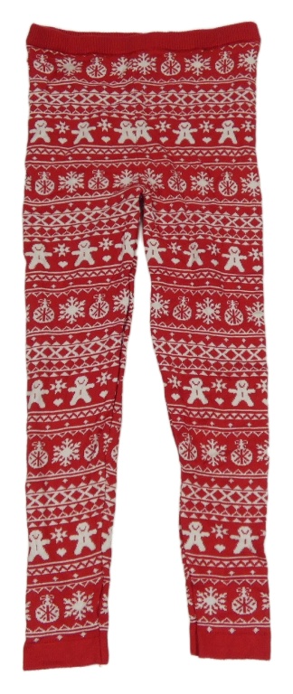 Červeno-bílé vzorované pletené legíny s vánočními obrázky Lupilu
