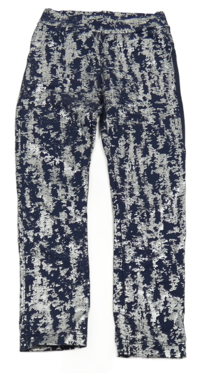 Tmavomodro-stříbrné vzorované legíny