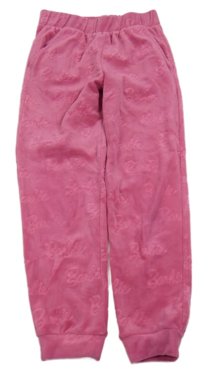 Fuchsiové plyšové tepláky s nápisy - Barbie