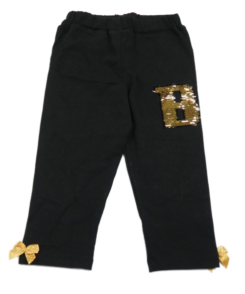 Černé capri legíny s písmenem z překlápěcích flitrů a mašlemi