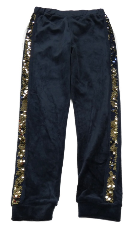 Tmavomodré sametové tepláky s pruhem z flitrů Pep&Co