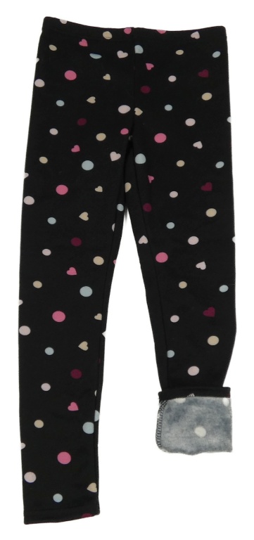Černé puntíkaté teplákové zateplené legíny se srdíčky dopodopo