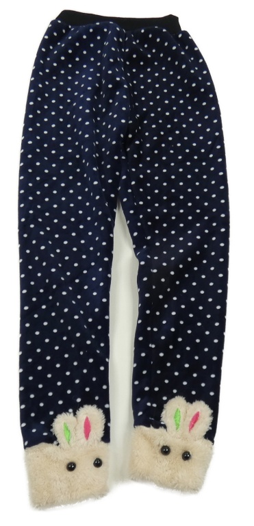 Tmavomodré puntíkaté plyšové zateplené legíny se zajíčky