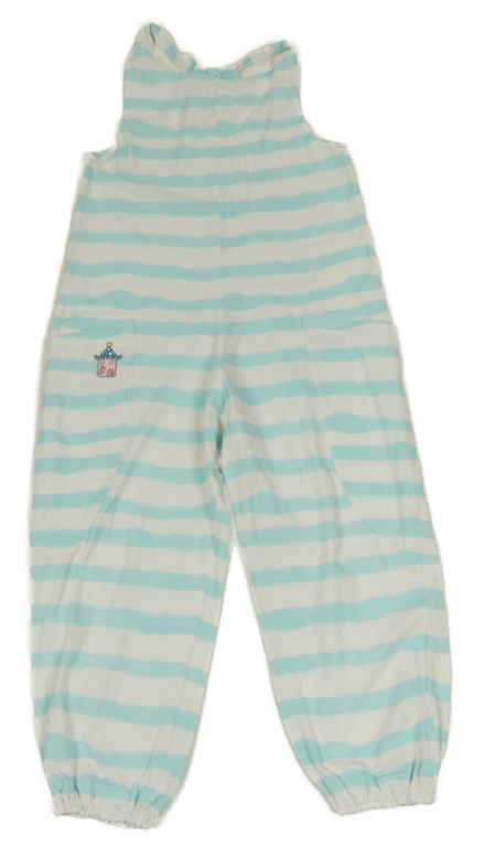 Bílo-světlemodrý pruhovaný lehký teplákový overal s domečkem