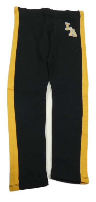 Černé legíny s okrovým pruhem a písmeny
