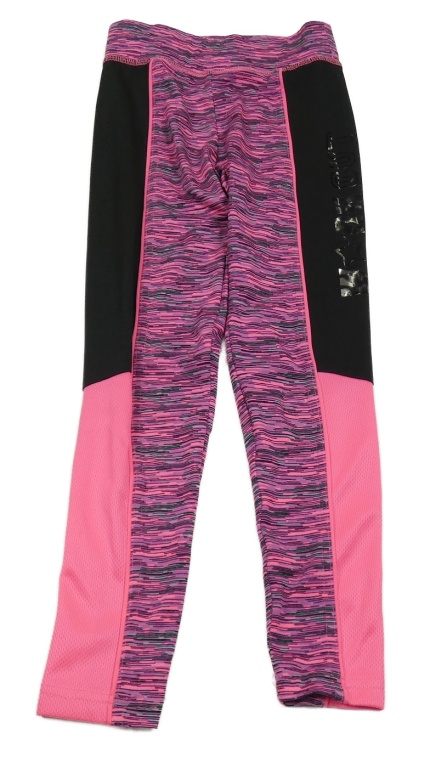 Neonově růžovo-černo-melírované sportovní legíny s nápisem Ergeenomixx