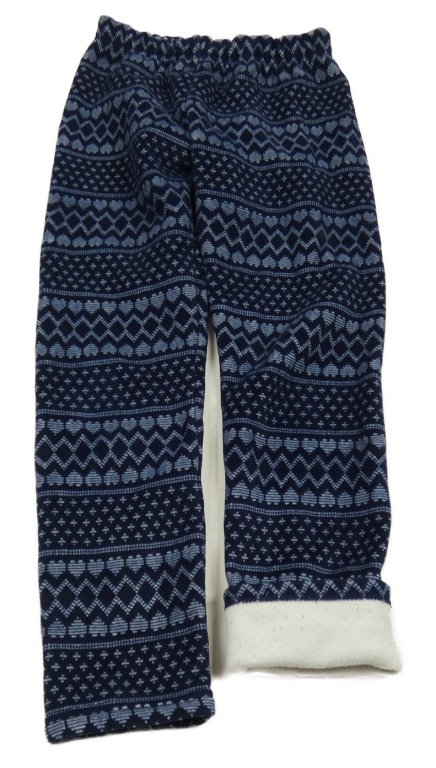 Tmavomodro-modré vzorované plyšové zateplené legíny se srdíčky Topolino