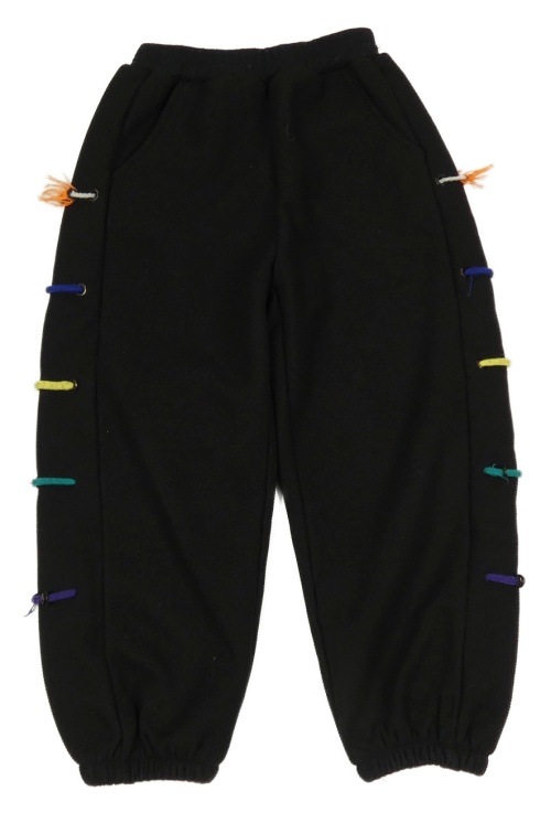 Černé žebrované teplé tepláky s barevnými tkaničkami